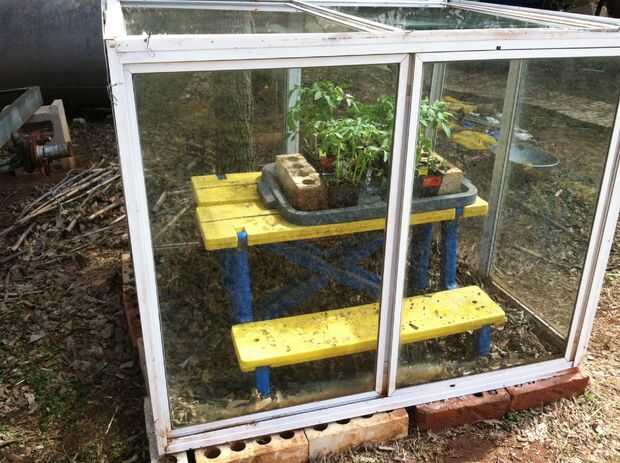 Para acceder a las plantas y otras cosas dentro de ella, yo apenas resbale uno de las cinco ventanas abiertas, como lo haría si estuvieran en una casa. Hoy (29 de marzo de 14) mezclé algunos suelos de textura franco-arcillosa y granos de café (50/50), en pequeñas tazas de papel de 3 onzas y tazas plásticas. Luego perforar agujeros de drenaje en tazas, regar la mezcla y plantado varias semillas diferentes, incluyendo tomate, okra, sandía baby, sandía de carne amarilla y algunas flores llamadas "Manta de indio". Mi pequeño invernadero es completo. Edito este post con el progreso como brote de semillas.