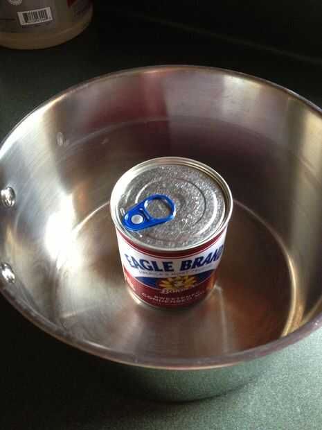 Lugar el abrir lata de marca Eagle en una olla.