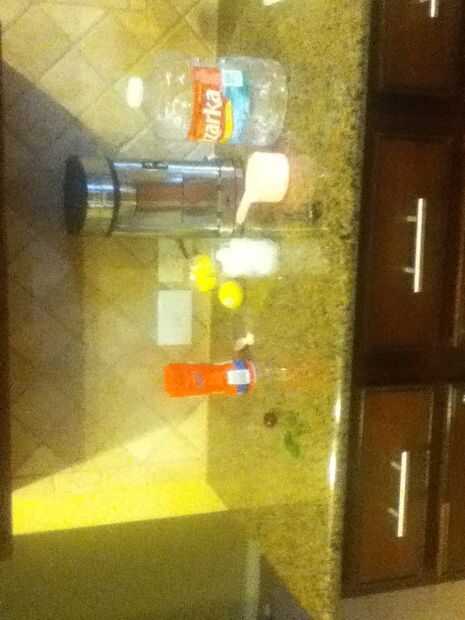 ingredientes: tesp de jugo 2/4 de limón 1/8 de azúcar 1 taza de ramitas de menta 10 gotas de jugo de cereza 1 taza de hielo A Copa Luna A columna vertebral cuchillo y una jaula de agua 4 aburrido para 1 taza de lemoned