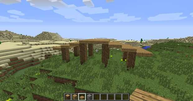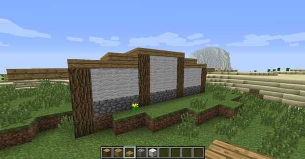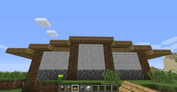 La estructura debe ser de que cuatro pilares (3 bloques y 4 bloques de altura) tres cuadras sí copiará tres cuadras hacia el lado. Las paredes deben tener alrededor de la parte inferior del adoquín y el resto se debe rellenar con lana. el techo bien debería verse como las imágenes que sería difícil de explicar. También debe tener una caída.