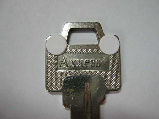 -Tomar el círculo completo 1 y pegamento estupendo a una esquina de su llave de la casa con los 2 puntos de referencia que utilizó en el paso 5.