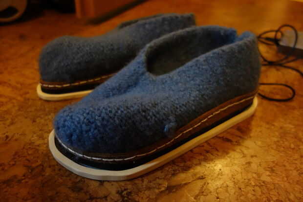 Me decidí por una solución casi alámbricos. He añadido un elemento de calefacción que es accionado a través de bobinas inductivas. Así mientras estás sentado en tu lugar favorito puede poner sus pies en algún tipo de plataforma y calentarse los pies, usted todavía puede moverse libremente y no tiene que cambiar o recargar las baterías.