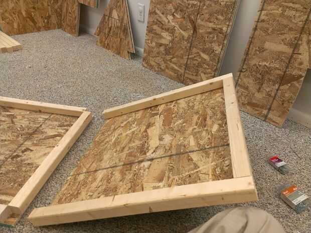 Empecé atornillando la primera hoja en los bordes con cuatro de los más cortos de los cortes de 2 x 2. Luego preparé el otro lado con más bosques, cuidadosos de asegurarse de que utiliza la longitud correcta. También, asegúrese de que antes de hacerlo que usted entiende qué lado es mejor dentro y que usted quiere mostrar fuera. Comprobar con cada paso de lo contrario que estarás loco a ti mismo cuando tienes que sacar maderas de hojas para arreglarlo.