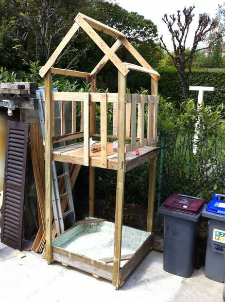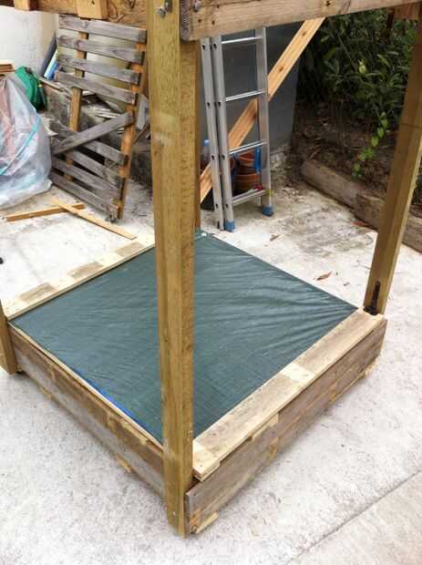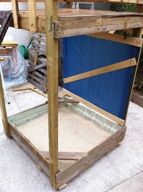 Aquí un proyecto poco: sueño de mis hijos era tener una caja de arena porque uno de sus amigos tiene uno, así que, como yo siempre quise una casa club cuando era un niño, decidí combinar las dos.