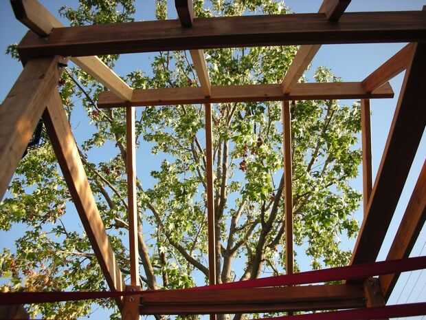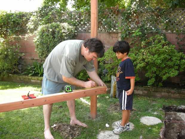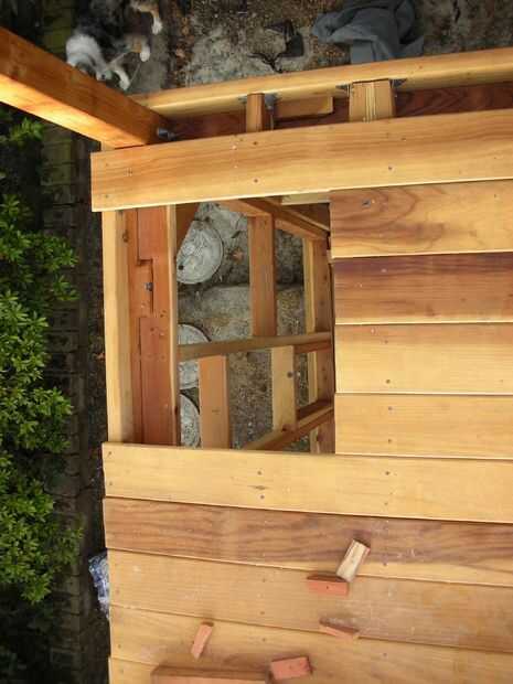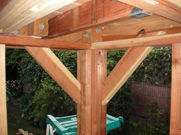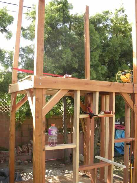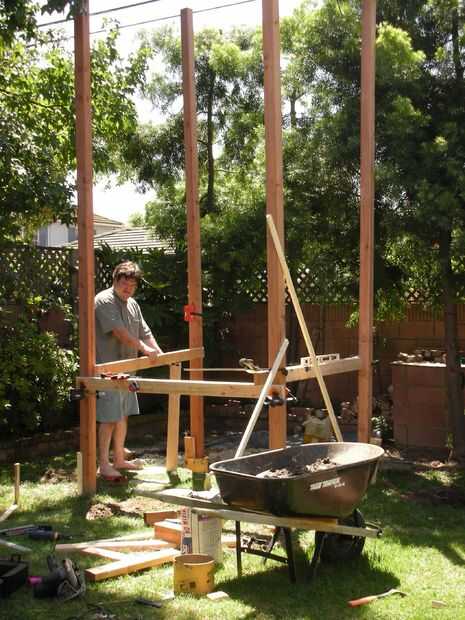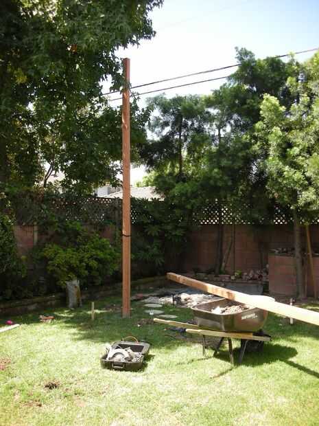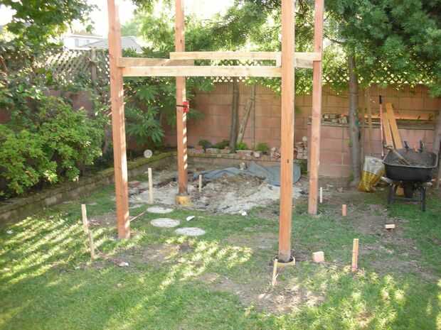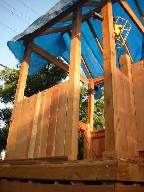 Nunca he construido una estructura en mi vida, pero empecé con 4 4 x 4 por 16' redwood puestos y varias bolsas de quikrete y me lancé más allá del punto de no retorno. He rastreado internet y consiguió mis ideas generales establecidos en mi cabeza gran parte del trabajo de diseño que debo a Barbara Butler. Yo fui consumido por los próximos meses a la construcción de la casa de mis sueños. Nunca he sido tan feliz en mi vida este proyecto.
