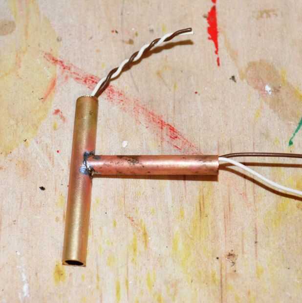 5. a continuación del hilo de rosca 2 tramos de alambre a través del tubo más pequeño y han salido por la parte superior de la tubería más grande.