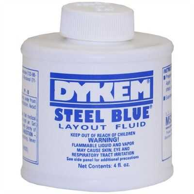 Lo primero que necesita es algún líquido de diseño. Yo uso Dykem azul. Compré mina de Grainger suministros parte #26945. También puede utilizar algunos bolígrafos de pintura o pintura plana.