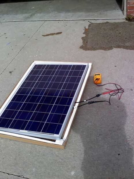 Montaje del panel demostrado para ser difícil. En lugar de en el suelo donde fácilmente podía controlar y mantener los paneles, decidí instalar éste en el techo para mejor exposición solar. Como se puede ver en la tercera foto, está convenientemente justo en el borde de la azotea, reduciendo mi cable y pérdidas potenciales. El alambre de 12 calibre está específicamente hecho para bajo voltaje (10-30), para mi sistema de 12 voltios en que, incluso con el grupo produciendo 23 voltios circuito abierto.