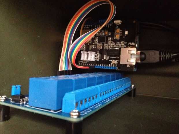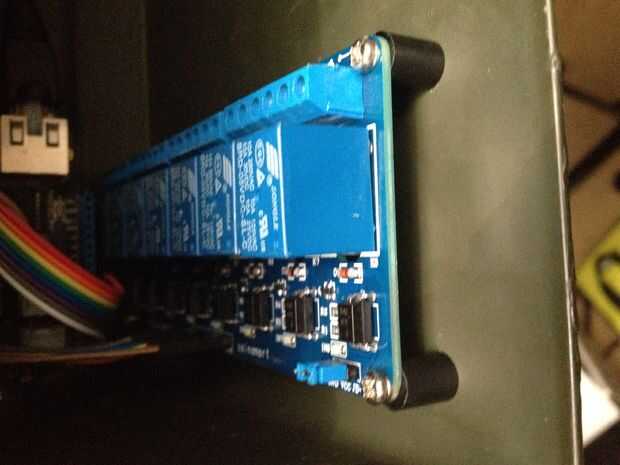 Utilizar separadores de plástico en el módulo de relé y el metal que en el Arduino. Quería probar y mantener el módulo de relé como aislados como sea posible. También tengo un bloque de terminales para uso va desde el puerto IEC a los circuitos y el módulo de relés.