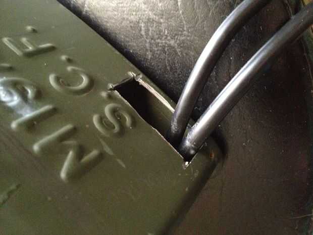 Así que ahora que su montado, corte un agujero cuadrado agradable para los cables que vienen de. Luego use esa manguera de 1/4" para el metal para que no roce los cables.