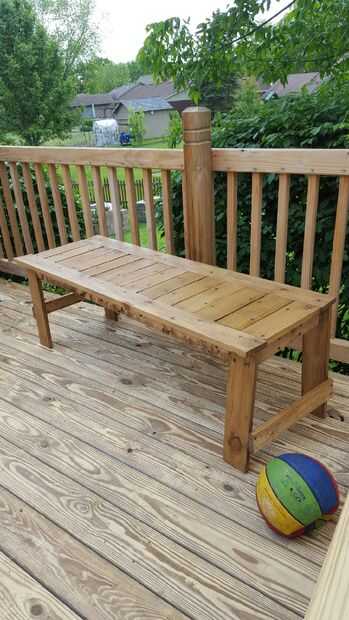 Utilice un colorante que tiene una protección así. Esta mancha tengo como una mancha mistinted en lowes por US $9 para el galón todo. Tengo 3/4 de galón a la izquierda después de la tinción 2 bancos y la tabla completa.