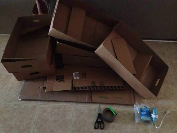 Para la construcción usé algunos izquierda sobre cajas de cartón que tenía puesta alrededor así como algunas piezas de repuesto de cartón. Yo también he decidido vestir el exterior para hacer más presentable (opcional) así que utiliza espuma de arte para revestimiento, tablero de la espuma para el ajuste y buena gruesa cartulina para tejas.
