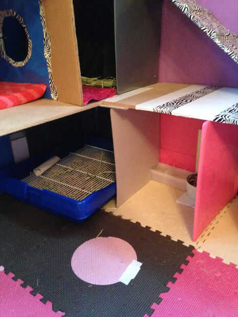 Asegúrese de poner la casa contra la pared. Primero quiere poner dos carpetas en las esquinas de la pieza de madera. Hay un cuadro que ayuda a explicar entonces usted puede poner uno en el centro de apoyo extra, poner un lado contra la pared y el otro en medio de la casa. Quieres cortar un agujero en el centro para la transición desde las habitaciones. Luego corté pato cinta alrededor del agujero por lo que no será fuerte. A continuación, sólo puede repetir el proceso si quieres un segundo piso. Pongo un juguete de heno en la verificación de anillos de la carpeta hacia fuera mi otro instructivo sobre cómo hacerlos!! Entonces acabo de poner una caja de litera y camas y todo lo que quería en la casa. Cubrir los techos de la casa con cinta pato que mi conejito no deslice en la madera. También usé algún tapón de alfombra para el problema de desplazamiento. Para la rampa a rodado para arriba algunas tarjetas sobre un trozo de madera cubierto en pato cinta adhesiva para que no se deslice!!!! Arriba se muestra el agujero en la pared! ^^ Si tienes alguna duda comentar abajo!!!!!!