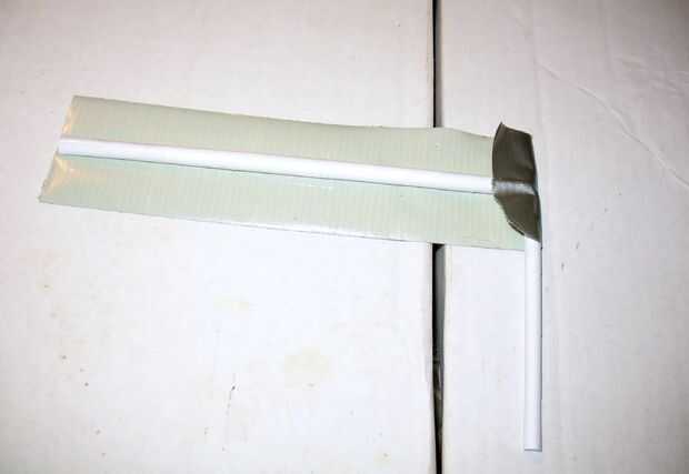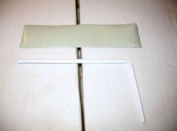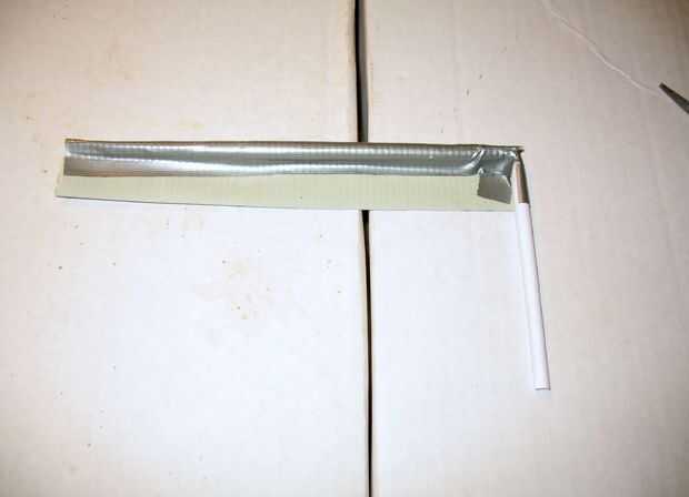 3. Tome un pedazo de cinta del conducto, que es un poco más largo que el extremo largo del tubo, y pone el lado pegajoso hacia arriba sobre una superficie plana.