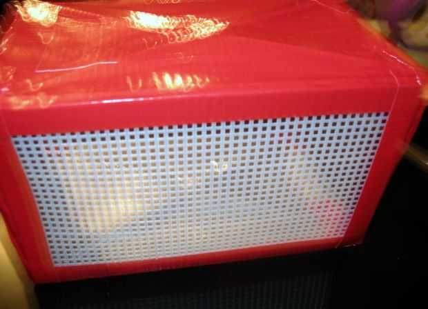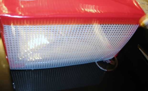 28. Tome un pedazo de cinta un poco más largo que el pedazo de pantalla y coloque el lado pegajoso hacia arriba. Pone la pantalla en la cinta de 1/4 de pulgada del borde. Poner la caja sobre su lado largo, en la parte superior pantalla y envolver la cinta a lo largo de la parte superior de la caja. Cortar y meter los extremos de la cinta así que ajusta perfectamente en las esquinas y los bordes.