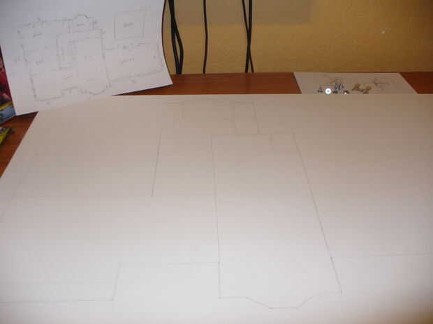 En primer lugar usted necesita dibujar los planos en papel y luego escalar hasta el tablero de la espuma. Usé 1 pulgada = 2 pies.