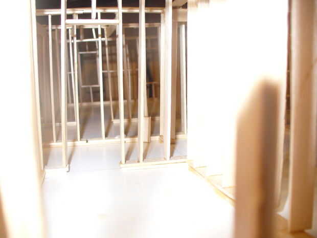 Después de tener la planta extrae en el tablero de la espuma puede empezar a hacer las paredes de la planta. Que espacian los pernos 1/2" aparte y las ventanas o puertas 1" de ancho.