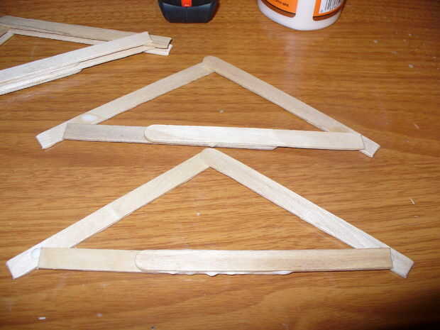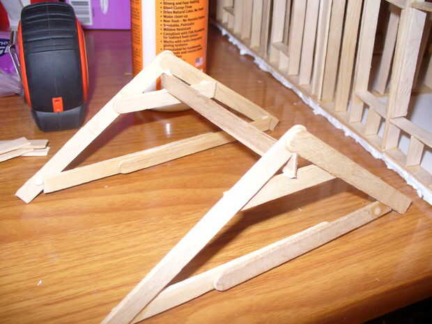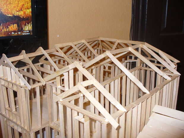 Ahora necesitamos un techo sobre la casa principal. Empecé con las cerchas del techo, tuve que hacer una docena de estos para poder poner un techo decente. Si necesita una referencia buscar en su ático.