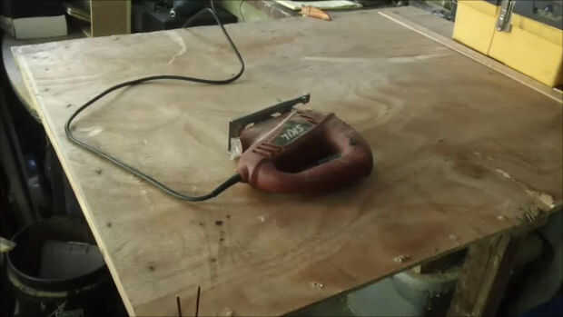 A continuación tendrá que desarmar el palet hasta tablas individuales. Esto no es tarea fácil, pero con un martillo, un tiempo y un montón de sudor, puede lograr que se haga. A continuación, debe quitar todos los clavos. Usted también necesitará una hoja de madera contrachapada para este proyecto. Pude encontrar una plataforma con una tapa de madera que resultó para ser perfecta (y gratis).