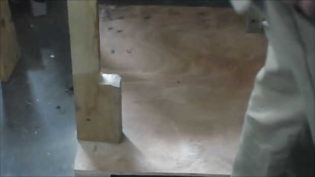 Las dos ranuras de corte en las vigas (para carretillas elevadoras) se curvan, y querrá el corte plano así los niveles de la torre pueden estar en ellos. Tan tomar una sierra de mano y esas curvas en ángulos de 90 grados.