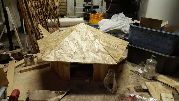 Independiente casa de invierno para un animal doméstico en climas moderados y fríos.Aislamiento de características, calefacción por suelo radiante alimentado por una batería de carga solar 12v y ventilador (opcional) en un circuito activado por un se
