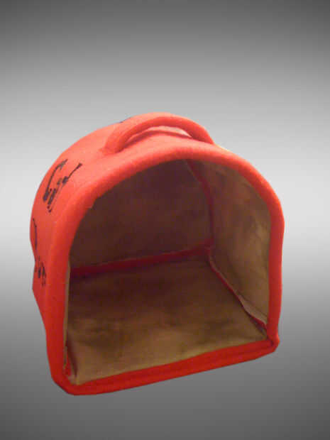 Usé la entretela gruesa entre todas las capas - realmente añadir estabilidad a la casa del gato, si desea agregar una forma de recorte de gato, o letras - hay piezas de recorte de fieltro para hacer eso. Si usted puede coser en su máquina de coser, entonces hacer esto antes de coser las piezas juntos. Si va a coser a mano, puede hacerlo en cualquier momento antes de coser el forro al algodón. Después de coser las letras y la forma de gato, luego cosí las piezas juntos.