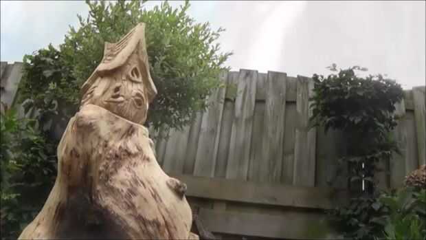 Herramientas y cosas...Un tronco grande; Esto realmente puede ser cualquier tamaño, pero elegí uno que está parado (en su) cerca de 18" de altura con un diámetro de 10". He visto algunos de estos tipos de cosas hechas directamente sobre un tocón