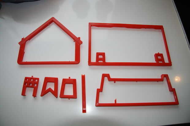 Así se hacen los kits como el buen viejo modelo moldeado paso a paso aeroplano kits. Tienes que romperlos aparte y dos de las piezas para las piezas de pared final del gancho. Incluido también es una herramienta para la fabricación de ventanas, la chimenea y algo que parece como una espátula.
