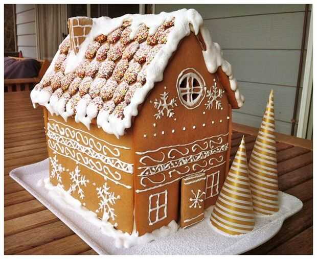 Estoy seguro que muchas personas tienen una receta de pan de jengibre de probado y verdadero y hay un montón de plantillas disponibles en línea así que no voy para tratar de ir allí. Básicamente, utilicé chocolate blanco derretido para sostener la guinda casa juntos y real para los detalles. Pecas de chocolate hecho tejas grandes y una cantidad saludable de azúcar glas solo completa el efecto Nevado.