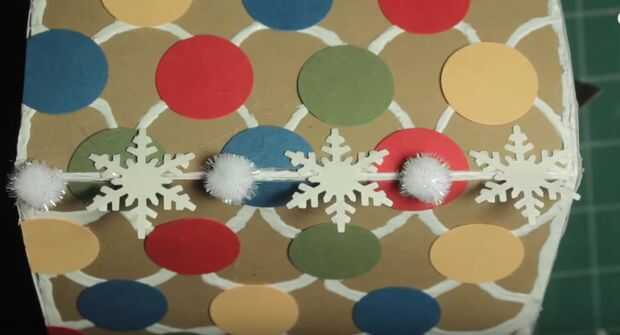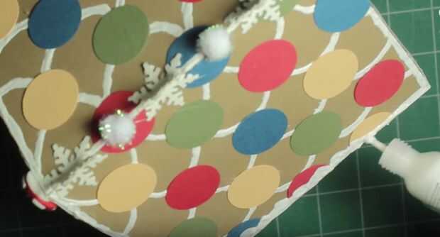 También he añadido pegamento del brillo de color diferente a todos los círculos de papel en la casa para que se vean como caramelo.