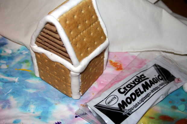 Auténtico pan de jengibre casas uso frosting o glaseado como el "pegamento". Ya que estaba trabajando con 30 niños y sin presupuesto, utilicé pegamento en su lugar. Y una endurecimiento del uno mismo arcilla, Magic modelo fabricado por Crayola para decoración. Esto era más rentable y también enseña conceptos de arte al mismo tiempo.