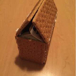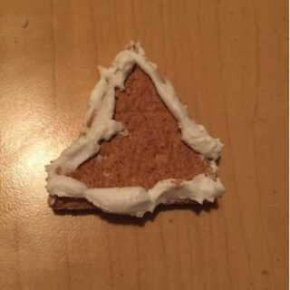6. Repita el paso 5 para el segundo triángulo de galletas graham. Estas piezas llenarán los huecos entre la pared superior y la azotea en los lados cortos de los cartones.