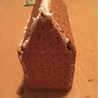 2. Conecte la guinda de cada hoja de la galleta en el borde de las galletas en el lado largo de los cartones. Esto creará un pico triangular para el techo (ver imagen abajo).