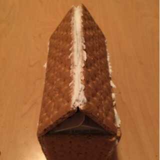 7. Aplique una ligera presión durante cinco segundos mientras sostiene el helado lado de un cuadrado de galleta contra un lado corto de la caja (ver foto abajo).