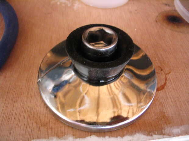 La toma a la pieza de goma de epoxy. Déjalo secar durante al menos veinte minutos.