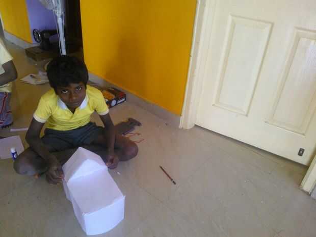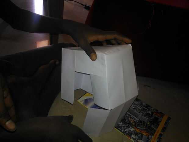 Entonces luego tome otras hojas A4 y doble como forma de la caja y pégalo a la otra parte de la casa con la ayuda del palillo de kevi. finalmente su casa mira como esta.