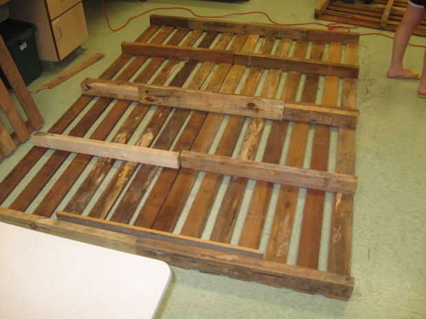 Si haces una cubierta debe ser de la tierra y en bloques de cemento para que no se pudre. También puede que desee limitar los extremos; más rescataron chatarra espaciadores, 2 x 4s u otros. En el Instructable "Plataforma Playhouse", el autor encontró palets que se forraron con tableros de partículas, que fue capaz de usar. Una vez usted comience a notar paletas se dará cuenta de que están por todas partes y tu mente empezará a encajar sus piezas en su casa.
