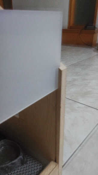 periódico de limpieza para arriba. Este enfoque facilita el trabajo de limpieza. A continuación colocar la hierba artificial. Y un tablero de acrílico extra con la longitud adecuada se deslice a través de la ranura de corte.