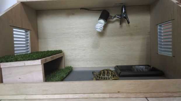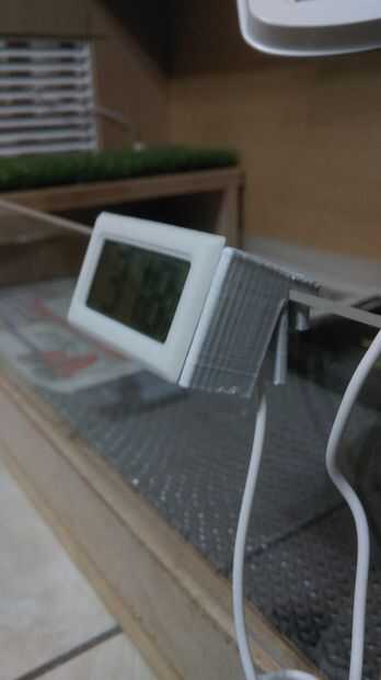 el espacio interior al calentarse la tortuga sin sacrificar el flujo de aire. También puse una cámara de internet para supervisar remotamente y dos termómetros con sonda para detección de la temperatura.