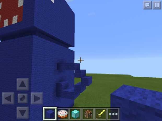 hice los brazos 3 cuadras abajo de la parte superior del cuerpo y en el centro de esa fila. Los brazos deben estar a 2 cuadras de ancho. No importa qué posición están los brazos, hice una curva del brazo hasta el calamar ' nave de una manera descarada y otros agitando.