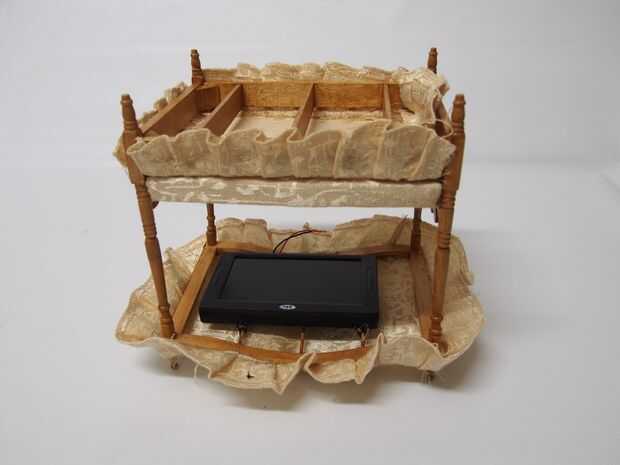 esto es un escritorio escala 1: 12 casa de muñecas miniatura, diseñado como parte de un dormitorio de miniatura. Su láser de corte de 1/8" cereza y pegado con pegamento para madera.Se adjunta archivo PDF para corte por láser.Hecho de TechShop Pittsbu