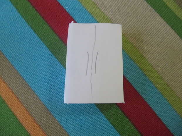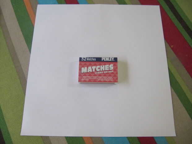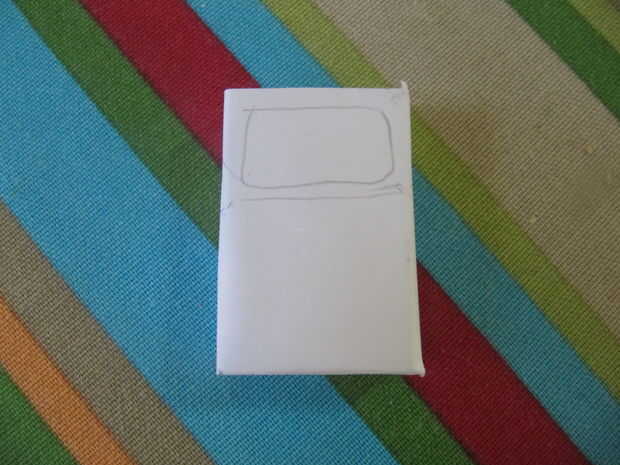 Comienza por cubrir la caja de cerillas en cartulina blanca. Puede utilizar cualquier color pero blanco será útil más adelante. Puede utilizar cinta, pero usé pegamento. Si usted utiliza pegamento, deje que se seque.