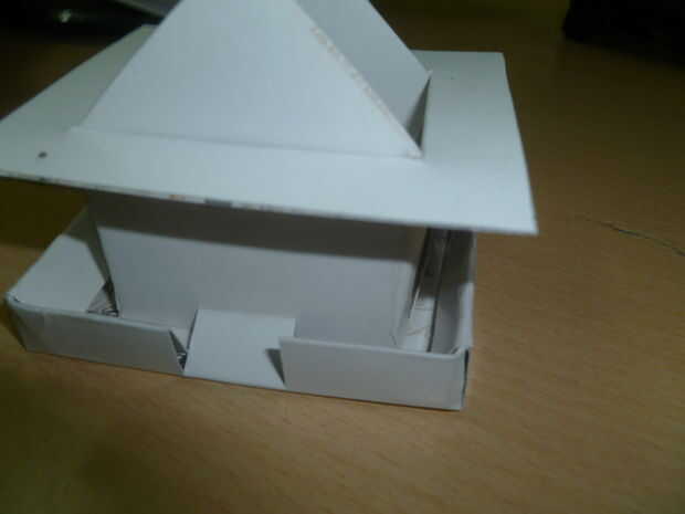 Hizo una cubierta para la casa. fijar el techo para insertar en una porción superior de la casa para hacer una casa