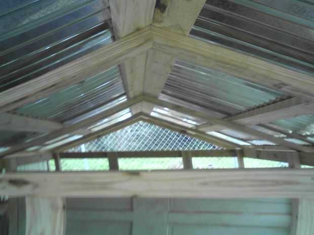 Seis 8' hojas de lata corrugada fueron cortadas cada una en 4' longitudes para hacer la cubierta.