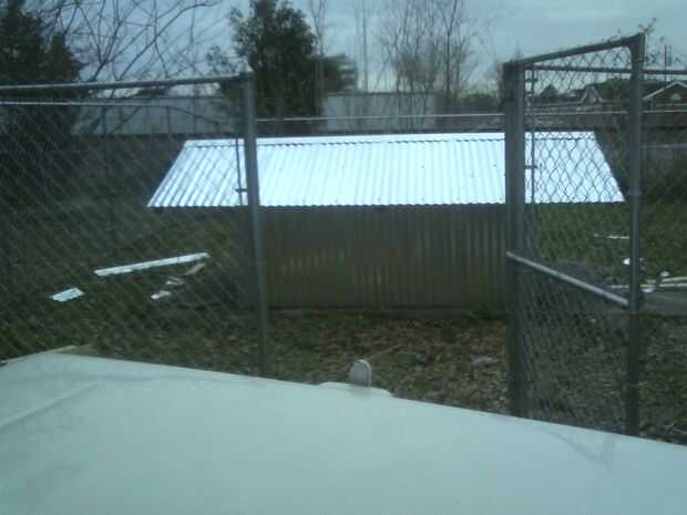 Lata acanalada fue utilizada para el techo y las paredes y una losa existente de 12' x 7' fue utilizada para la base.