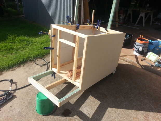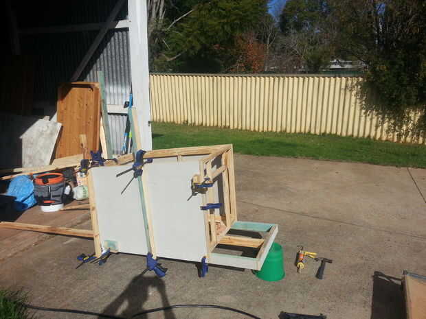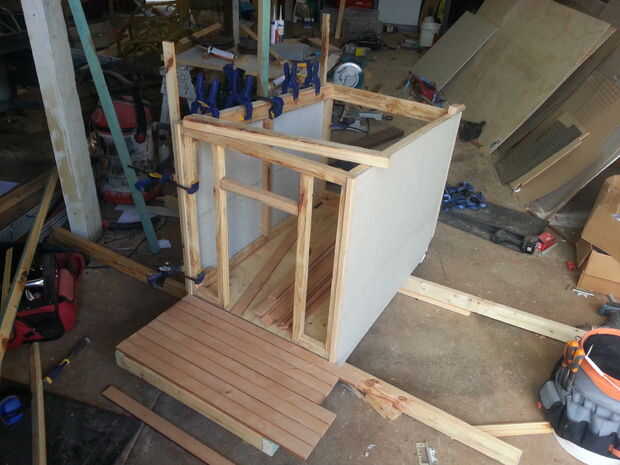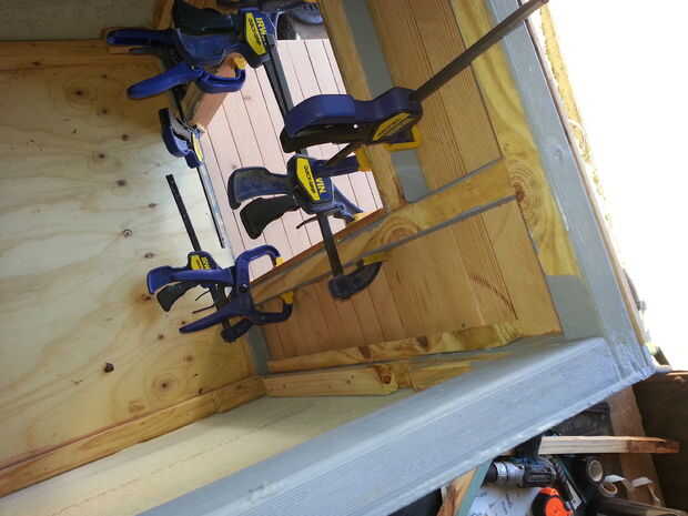 Moldura de pino esquina externa fue unido a las esquinas exteriores de la estructura que me diera un borde trabajar para medir y cortar la chapa de cemento. El siguiente paso fue revestido en el exterior del marco y fíjelo con clavos líquidos, sujeción y dejar toda la noche según las instrucciones. Láminas de cemento fue bastante fácil de usar y por trabajar desde los bordes de las hojas cuadrados podría reducir el número de cortes de la amoladora que tenía que hacer (no se olvide su máscara contra el polvo y gafas protectoras). Para ver el "frente cubierta" iba porque precio de algunos materiales como la madera del decking y decking compuesto, pero encontró que fuera de mi presupuesto alcance. Por suerte encontré unas vigas grandes (cedro?) en el cobertizo que tenía un patrón de grano agradable que Ripeado hasta convenientes tablones con una sierra de mesa. Si se pegan por lo que usar para obtener un efecto similar que alguien me indicó que algunos madera plataforma lucen muy bien también. Para hacer más fácil cortar para arriba de las tablas y que ajuste pero no sujete hasta que había pintado el exterior para ahorrar que a máscara de la frente.