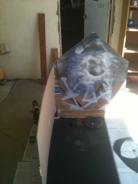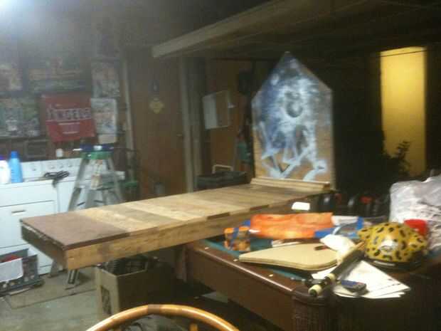 a continuación, utilizar planchas de madera vieja y cortar las paredes laterales, delantera y trasera de la casa. Medí la parte superior de la casa cerca de 3 pies y la espalda para ser el mismo, luego hice las paredes unos 42 de largo y sólo un poco más corto que los lados frontales y posterior