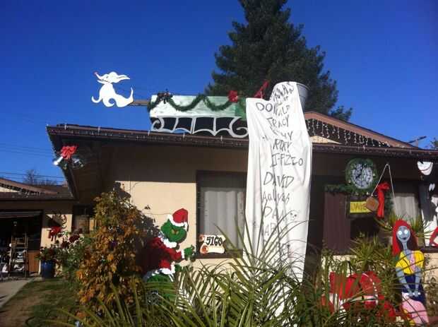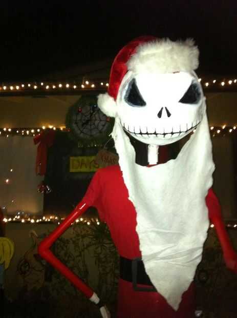para el pasado pocos años, nuestro hijo ha decidido su traje alrededor de sus zancos.Este año hicimos Santa Jack Skellington. La máscara fue hecha desde un globo de lámpara de acrílico de 12" de The home depot y la boca fue cortada y pantalla fue agr