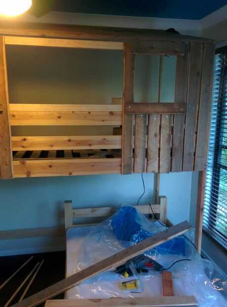 Tomé ideas de internet a la litera en una casa del árbol. Quería un look rústico, así que encontré una fuente de no tratado ciprés aserrado áspero de una yarda de la madera (todo el pino fue tratado y secada al horno era demasiado caro). Que es de 12mm de espesor, pero estaba todavía un poco pesado para la cama (considerando para el revestimiento sólo), pero no pude encontrar nada mejor. madera reciclada sería grande si usted podría encontrar. Tomó un poco de cepillado de los bordes y algunos lijado basto para quitar astillas, sin embargo, conservan la apariencia aserrada áspera rústico.