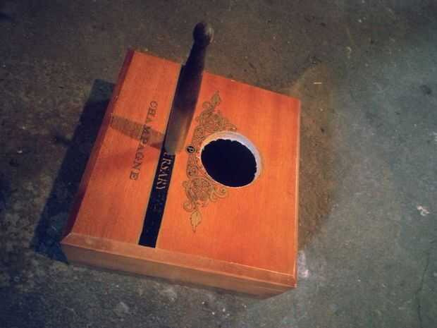 Perfore un pequeño agujero cuidadosamente en el palo (extremo que enfrenta la caja de cigarro) y pequeño agujero así por debajo del orificio de entrada de caja de puros. luego proceda a atornillar la máquina scew desde el interior de la caja de cigarro, en la espiga o el palo. Apriete para arriba en y casi listo!